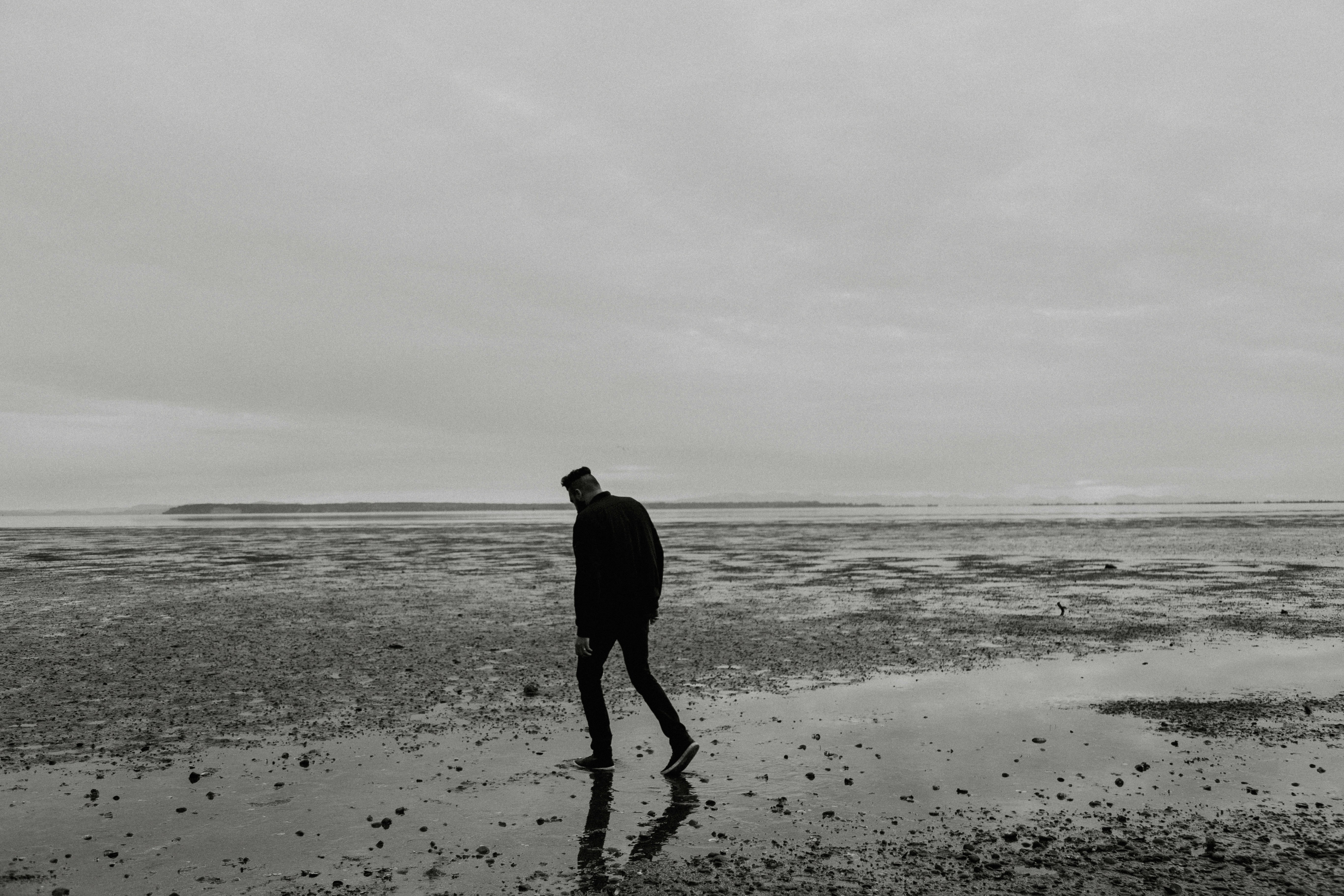 Rear view of man with orange trousers walking on a beach at water's edge silhouette people walking on beach at sunset. A clip of a man walking on water Walk on water stock photos walk on water stock illustrations. Facing him, there was this amazing cloud, what a setup! Is he really walking on water?
